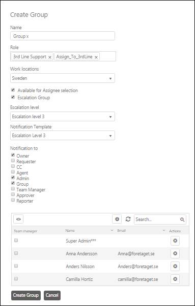 o Escalation Level: Select escalation level here. Currently three types of Escalation Levels are supported: Level 1, Level 2 and Level 3. Only Escalation Levels not yet assigned to a group will be displayed.