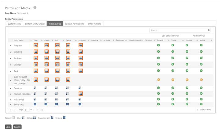 The Permission Matrix contains different tabs for active entity groups which are used to define role permissions access. Along with these tabs, there are two additional tabs: System Menu and Special Permissions which are used to define permission for system and configuration menu and define special function permissions for entity data, forms and views respectively. All these sections are described in following sections.