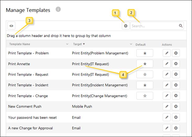 Manage Templates - Grouped by column header