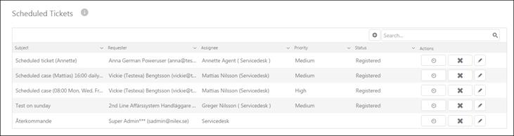 Here you can see a list of scheduled ticket, add new schedule, Edit or Delete.