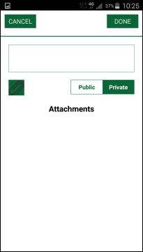 A switch button is provided to select the type of comment. Button has two options; Public and Private. When Public option is selected, the comment is displayed to all the users including End Users. Private option doesn’t allow End Users to see the comment.