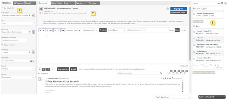 2. Description of the ticket with comments made on it and tabs containing other data and references to the ticket. See Ticket Description.