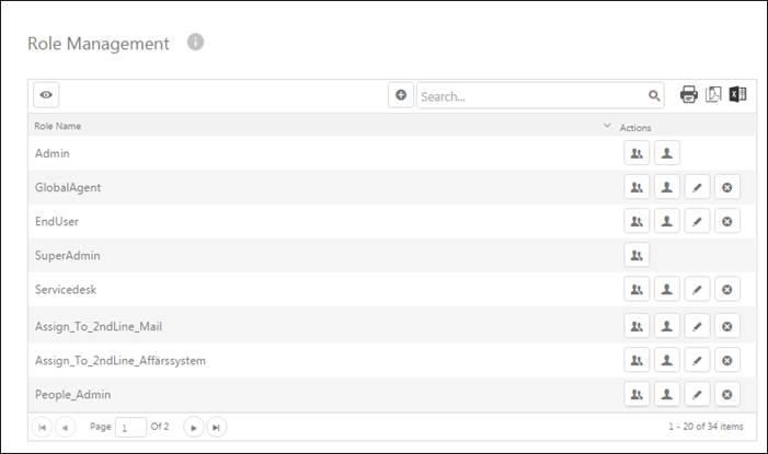 This form contains a list of existing roles. Roles with lower permission level than the logged in user’s Role level are displayed in the list. For example, if administrator is logged in, he is able to see the roles related to End User and Agent levels.