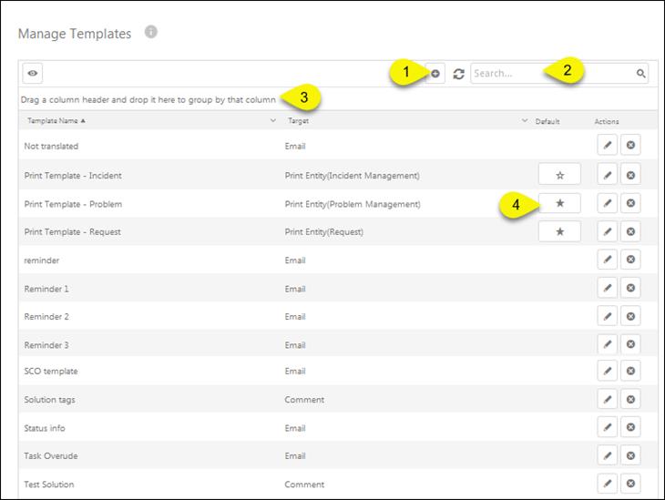 Manage Templates - Grouped by column header