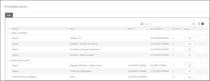 State: Ready to start: Contains active events waiting to execute one or more further times. In the list is the time for both Last successful run and Next run presented.