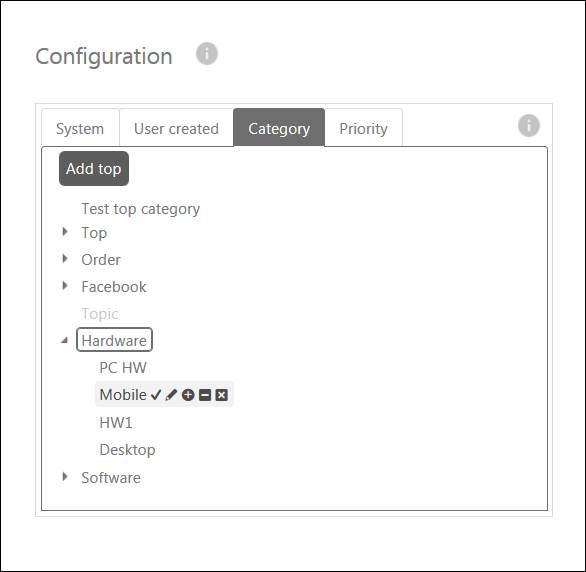 Not selectable:  Makes this Category non selectable. You will be able to see it when choosing a Category for your ticket, but you will not be able to assign it. After clicking this button it will change to a plus sign. Clicking the button again will change the Category back to selectable.