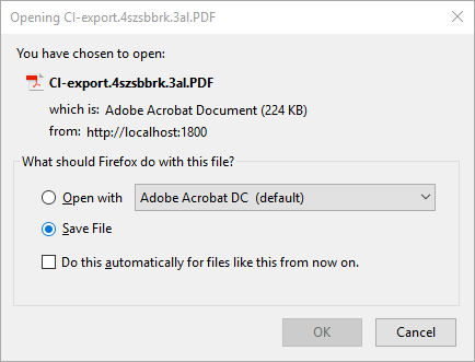When file is created a form is displayed in the web browser. From here you can load/open/save the export file. This functionality differs a bit depending of which browser you are using. Example: