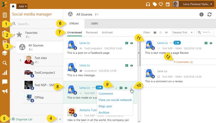In the Stream tab you get an overview of incoming information from your social media source. Here you can see what needs your attention. From here you can: