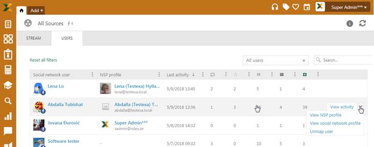 Above the list there are All users filter – This filter is using to filter social network user by NSP mapped users or NSP not mapped users.