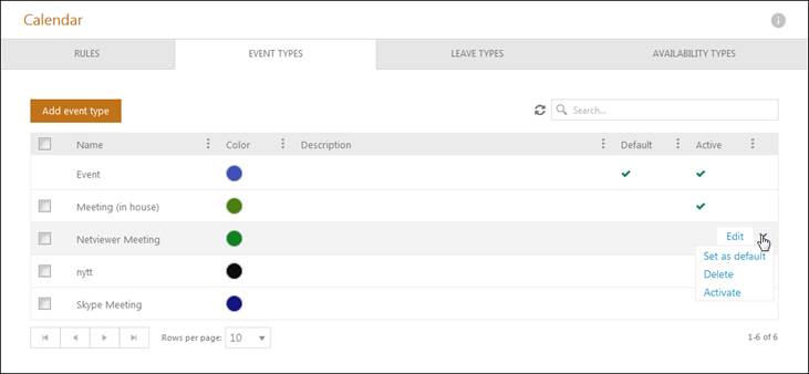 •Edit: Uses for edit event type. Edit form uses same form as when you add a new event type, see section ACalendar - Add event typeCalendar - Add event type.