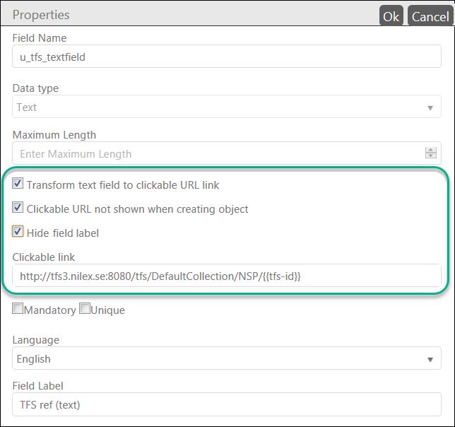 Clickable URL not shown when creating object: If this is enabled you can define clickable field should be visible only for existing object.