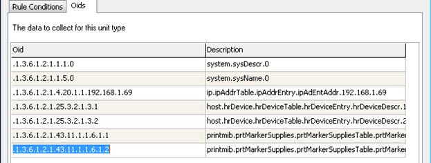 Units are identified during the scanning by looking at the specified values in the specific rows, in units SNMP file. Every row in SNMP has an Oid, name and value.
