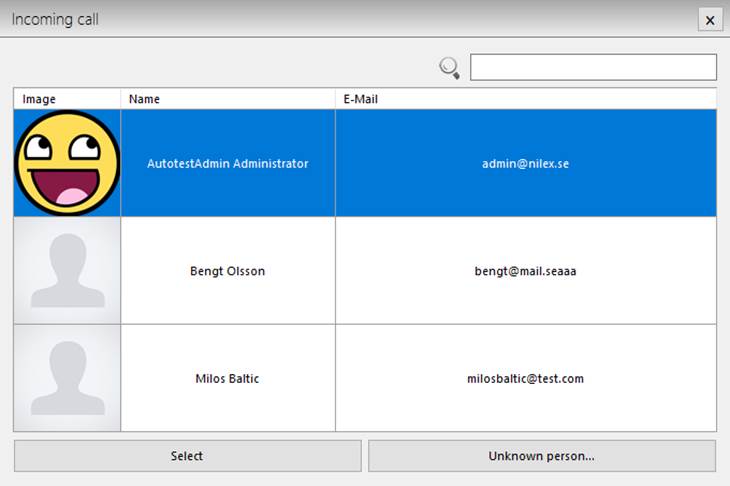 When you find desired user click Select button and User exist in NSP database popup will be appear, in other case if user don’t exist in list click Unknown person... button and  User don’t exist in NSP database pop up will appear.