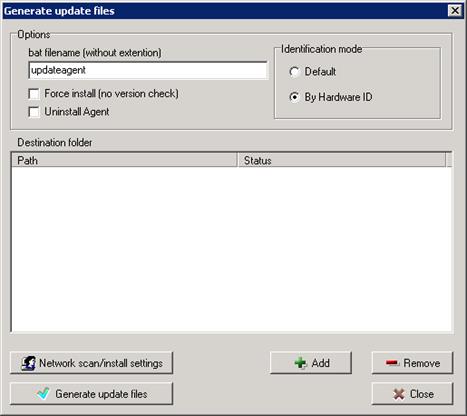 Open menu “Network units” and select “Generate update files”.Click on Add-button to set a directory where to put the files. Then click Generate update files.