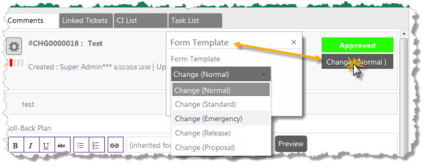 To facilitate the use of the Change models the system uses a set of different forms, custom made for any model. To implement different Standard change workflows different statuses are used.