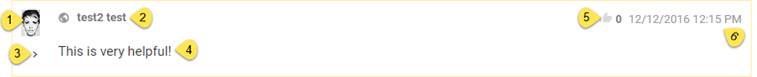 Each item in the comment list contains various fields. All the fields in the comment item are labeled in the below figure and explained in the list: