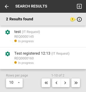 You can see the number of tickets found based on the selected search criteria. Selected criteria can be displayed by tapping the Info icon (1) in the top right conrner. Tap an area outside the menu to close the criteria form. Paging features are available below the list similar to other lists. You can select to show 5, 10, 20 or 50 items per page. If the list contains more than selected number, only first page is displyed initially. |