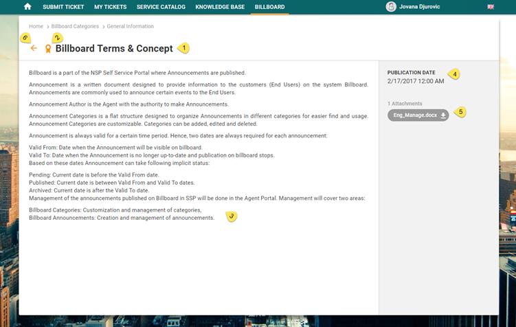 Self Service Portal provides its users to access a Billboard containing different Announcements.