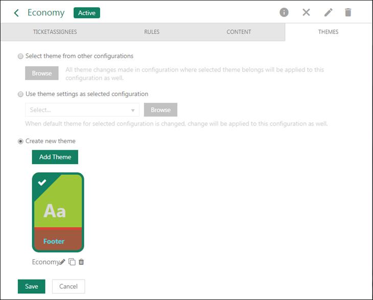 •Create new theme: If you select this option, you will be able to create a custom theme. See Theme editor.