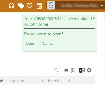 If other Agent insert changes (new Comment, Status or other property change) in ticket where you are Assignee NSP will show a message in upper right corner that your ticket has been changed. Message contains link to ticket, with this link you can open it directly.
