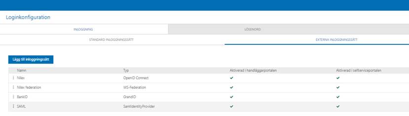 aktivera/avaktivera inloggningssätt separat för handläggarportalen och