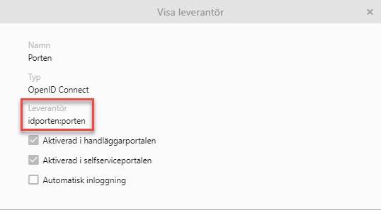 •Client ID - denna information innehåller Client Integration Identifier från IDPorten.