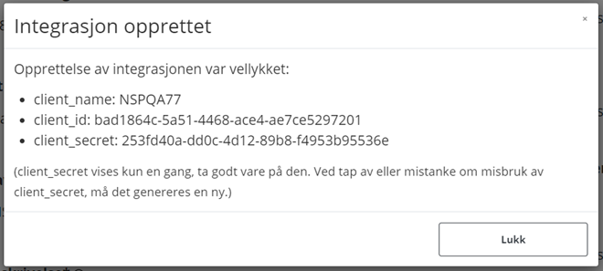•Client Secret - denna information innehåller Client Secret från IDPorten