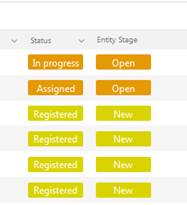 Dashboard and Views: Entity Stage value is displayed with color background similar to Status value.