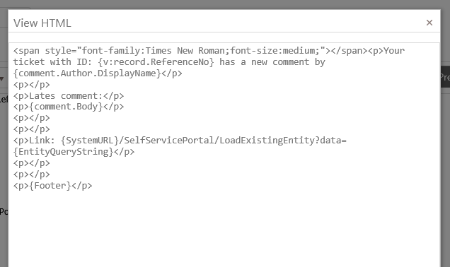 Text from incoming mail that creates a new ticket (ticket description) or comment on existing ticket will be formatted like: