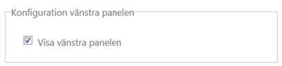 Om man i användarprofilen kopplar bort visningen av den vänstra panelen så hoppar systemet också över kod i bakgrunden för att uppdatera panelen. Detta kan vara värdefullt för prestanda vid stora databaser.