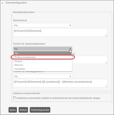 Nu kan även format för slutanvändarnamn innehålla Windows användarnamn.