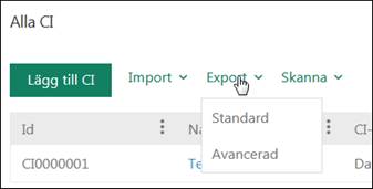 Utöver standardfunktionen för export finns nu function för avancerad export från CMDB.