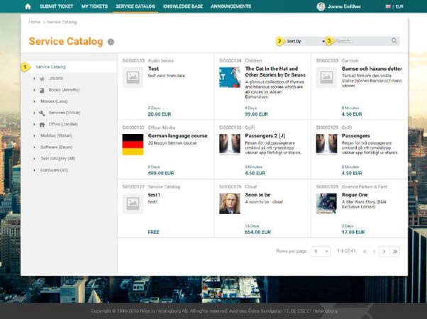 •List of Service Items. The list could be filtered based on selected Service Catalog Categories or performed search.