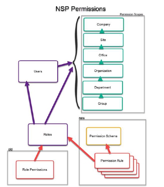 Roles are assigned to Groups and/or Users. In new NSP version Roles can be assigned to Users and Groups, but also to other Permission Scopes (Departments, Organizations, Offices, Sites and Companies). The permissions for a certain User is defined by the merge of all roles the User is assigned to, either direct or implicit via other Permission Scope membership. Read more of the new features in User & Permission Management.