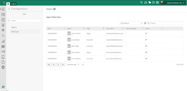 Panel on the left side contains lists of all User Types (End User and Agent). Search feature allows you to search User Type. After choose of type list is filtered due to selection.