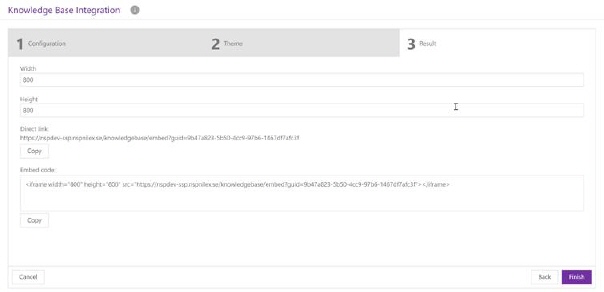 •Embed code (To embed the Knowledge base share point on your website, click Copy to copy the code.)