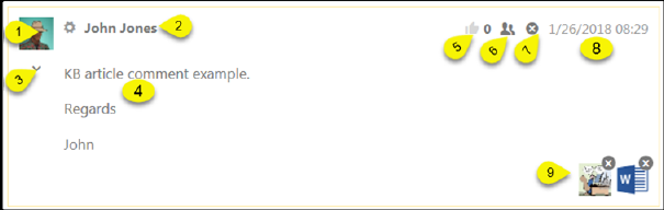 7.  Delete comment. Delete function is controlled by permission setting, if symbol is not shown you are not permitted to delete comments.