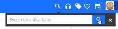 Here you can enter a search item and click the search icon (or hit Return) to perform search for the entered item in all available entities. The search result is shown in form shown below.