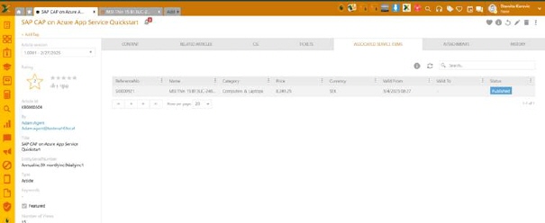 This tab shows all associated service items that were added during the SI Ticket settings (5th step).