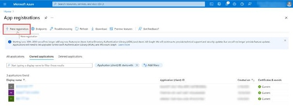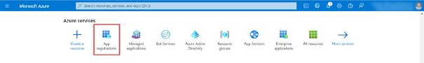 2.  On the Home page click on “App registrations” button. If “App registrations” button is not displayed on Home page, use search field to find it.