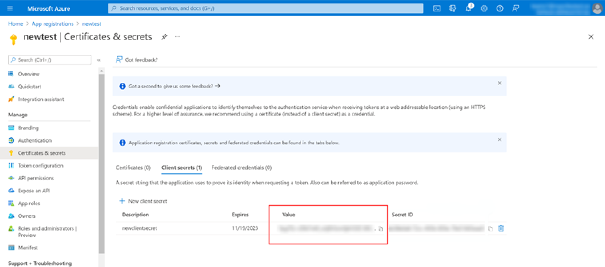 NOTE: Copy this value in Azure connection secret property in Microsoft Teams form.