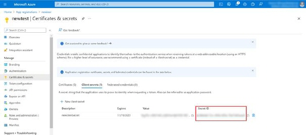 NOTE: Copy this value in Azure connection secret property in Microsoft Teams form.