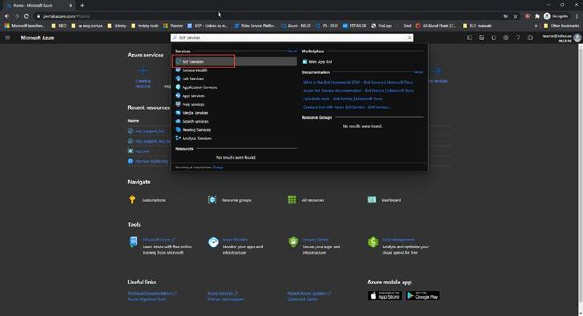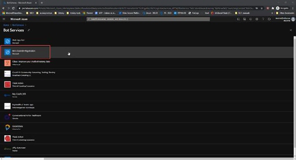 2.  On the Home page search for “Bot Services”.
