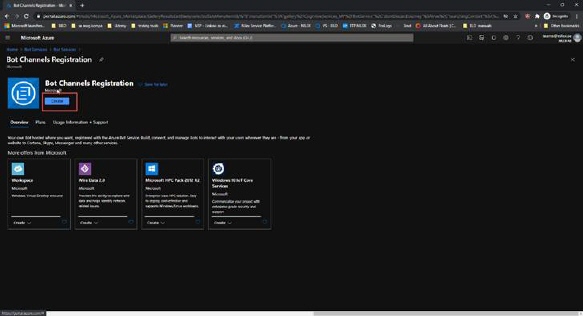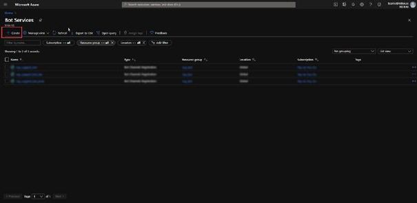 3.  On the Bot Services page click on Create