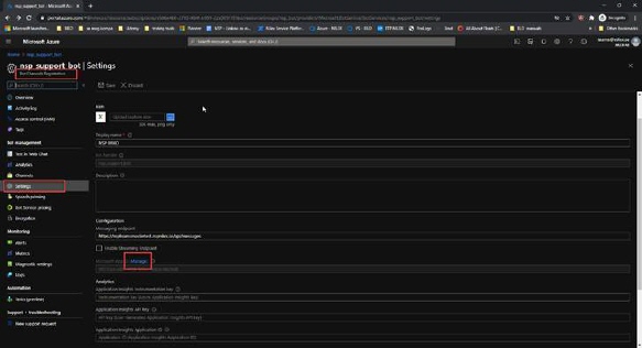 Azure configuration – Create and configure new Bot service