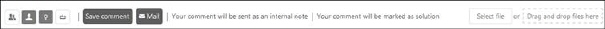 Two buttons to define whether comment should be marked as solution or marked as workaround. Buttons have toggle function, only one of them be selected. The button for current selected alternative is displayed in darker color. Chosen alternative is displayed in text to the right of Mail button. If any of button is selected, one of these alternative texts is displayed: “Your comment will be marked as solution.” or “Your comment will be marked as workaround.”. |
