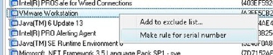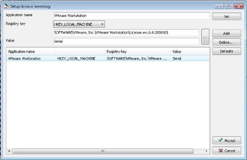 First state the name of the program. It must be spelled exactly so that it can be matched with a line in the list over installed programs. That’s why there is another way to open the dialog Setup license inventory – from properties for a unit and tab Installed applications right click on the program and choose Make rule for serial number.