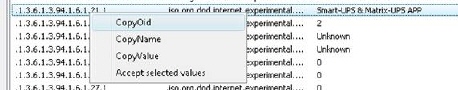 Here you can see all SNMP information for this unit. Find a suitable row for identification, right mouse click and choose Accept selected values, to use this row for identification. You can also copy/paste or manually type to add the value.