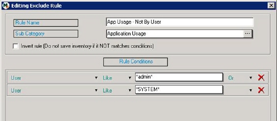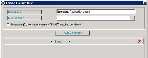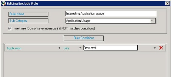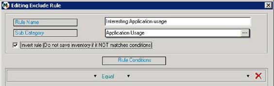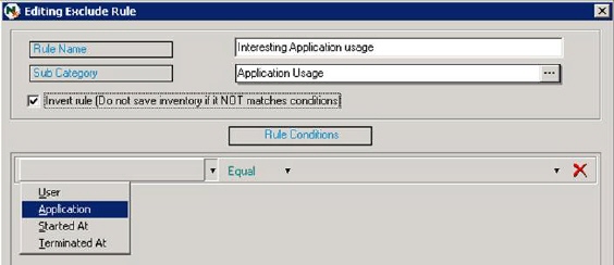 If you wish to exclude all information that does not follow the defined conditions, you can check the option Invert rule. In this example everything except a special application is to be excluded so it is checked. We could also select the condition Not Equal to get the same effect.