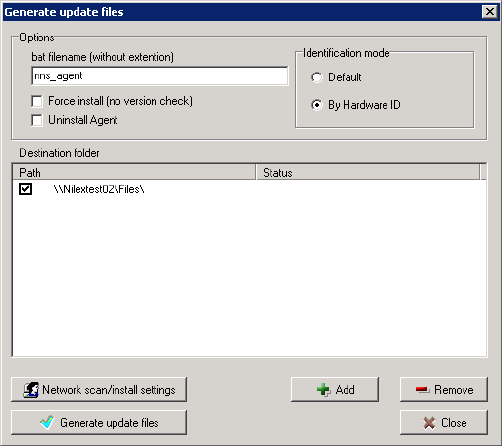 If the agent should be distributed in another way than from the Network Scanning module, for example through a group policy object or ZenWork’s software deployment, it is possible to create an install package directory, which will set up all the required files, including a bat file, installer executable and the agent msi. This package will be ready to be used in a login script. This package will also handle version checking and upgrades of the agent.